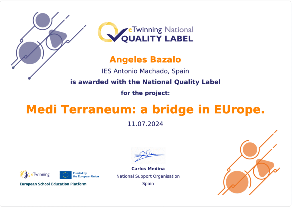 Todos los profesores participantes en este proyecto han obtenido el Sello de Calidad Nacional y Europeo.