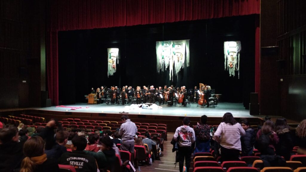 El pasado día 27 de enero todos los curso de 2º ESO del IES Antonio Machado pudimos disfrutar de un magnífico concierto de la Real Orquesta Sinfónica de Sevilla(ROSS) en directo interpretando una selección del ballet Romeo y Julieta, de Sergei Prokofiev, acompañado de la excelente realización por parte de la compañía de títeres y su actriz-narradora, que hicieron deleitarnos ante tanta belleza musical y artística. Nos felicitaron por lo bien que participó nuestro alumnado y el silencio que supieron mantener durante casi una hora.